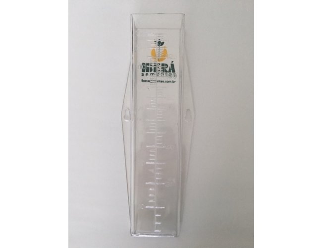 É feito em material PS Cristal virgem, com capacidade para medir 130mm de precipitação de chuva.