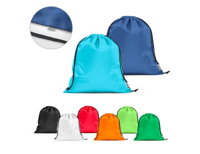Sacola tipo mochila ecológica em rPET Sacola tipo mochila em rPET 190T. Produzida a partir de plástico reciclado contri